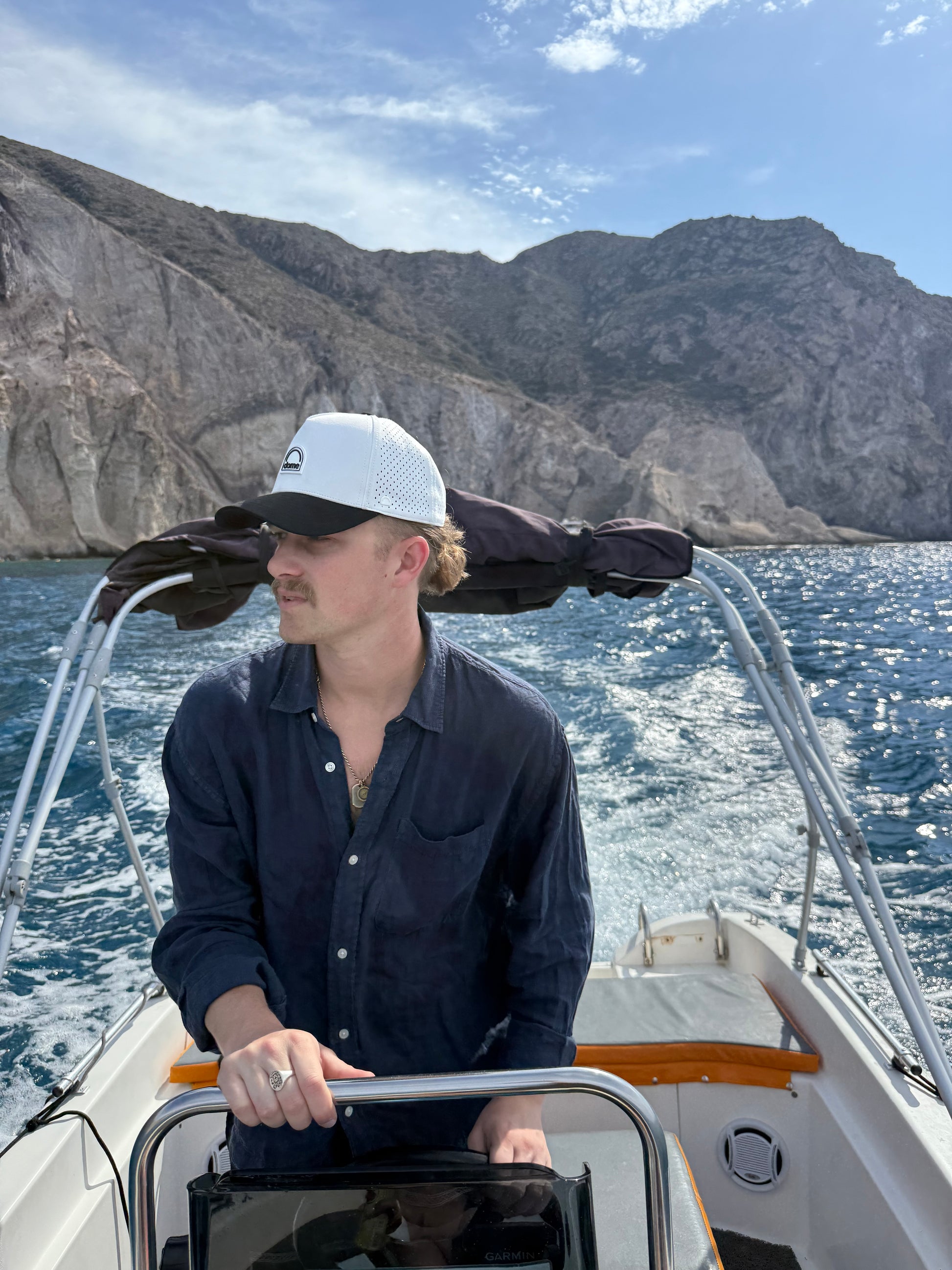 The Black w/ Cream two-tone variation of The Don brings together a sweet, warm caramel brim with crisp white panels for a look that works just as well on the fairway, by the water, or sipping a cold one at sunset.